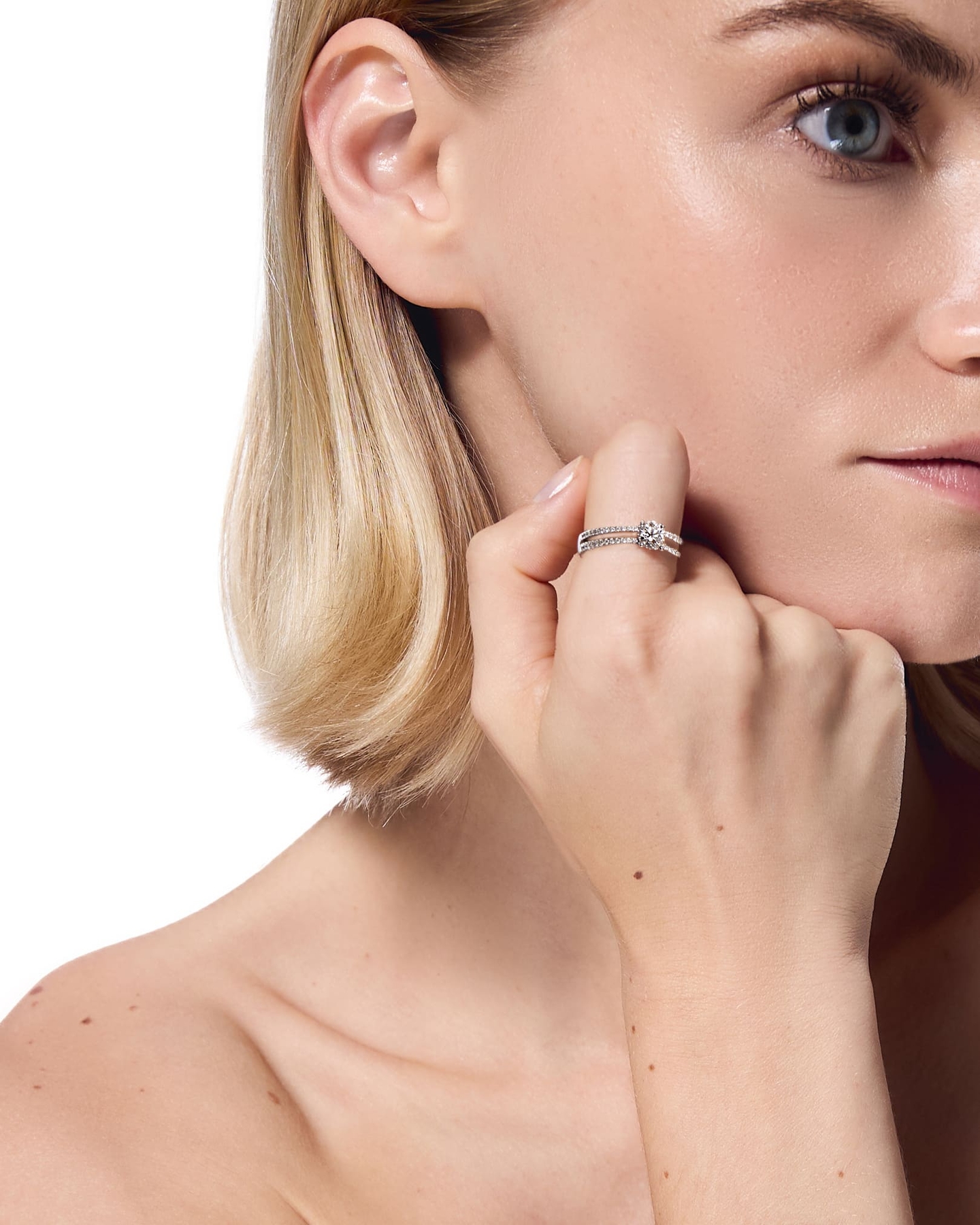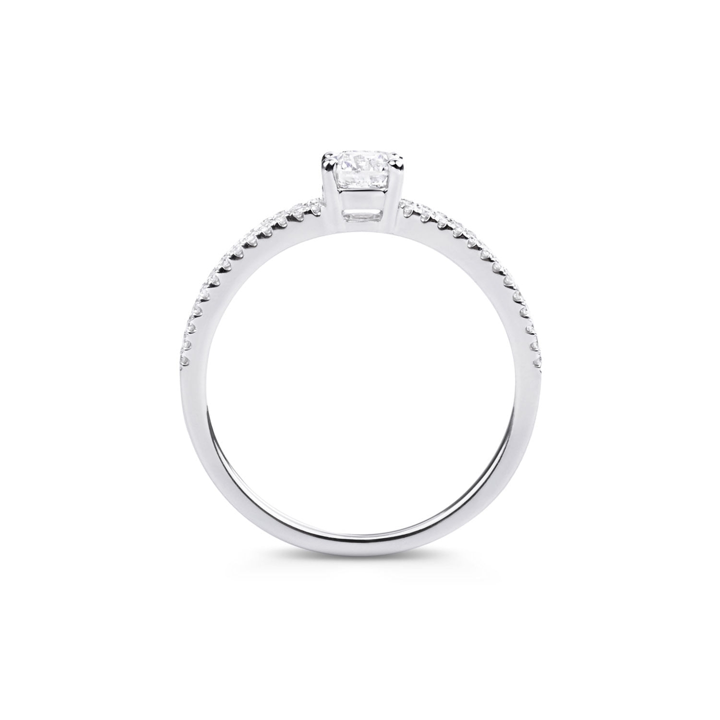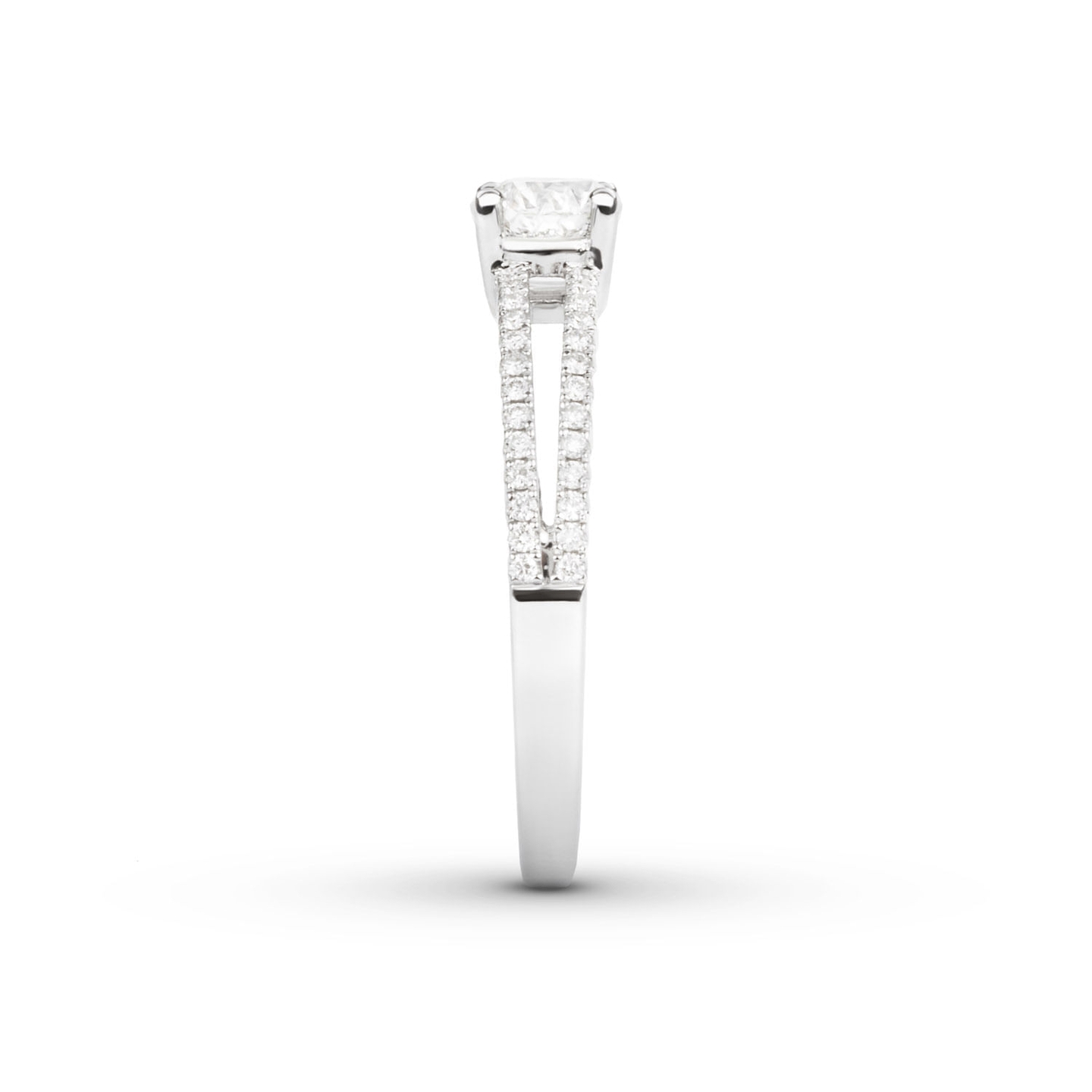 Anel solitário em Ouro branco 18k com diamante solitário lapidação brilhante e contorno no aro duplo