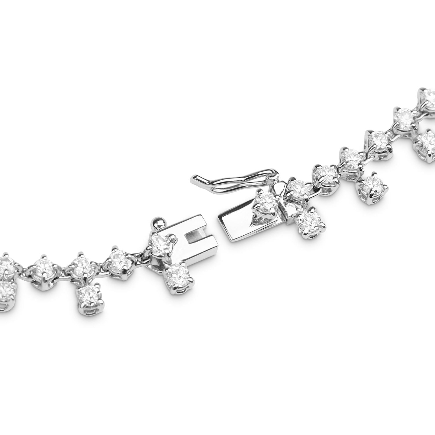 Este deslumbrante colar em ouro branco 18 quilates possui um peso substancial de 46.01 gramas. É adornado com um espetacular conjunto de diamantes, totalizando 26.91 quilates. Os diamantes exibem uma qualidade de cor G/H e clareza VS, sugerindo um brilho excepcional e uma excelente qualidade ótica. Este colar é uma declaração majestosa de luxo e elegância, capturando a atenção com seu brilho radiante e a sofisticação do ouro branco 18k, sendo uma peça magnífica que certamente se destaca em qualquer evento ou ocasião especial.